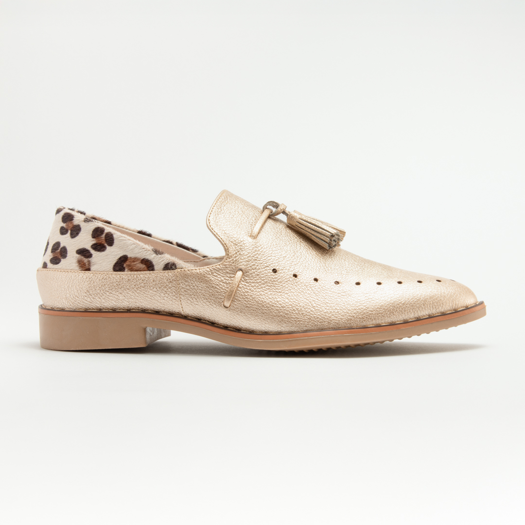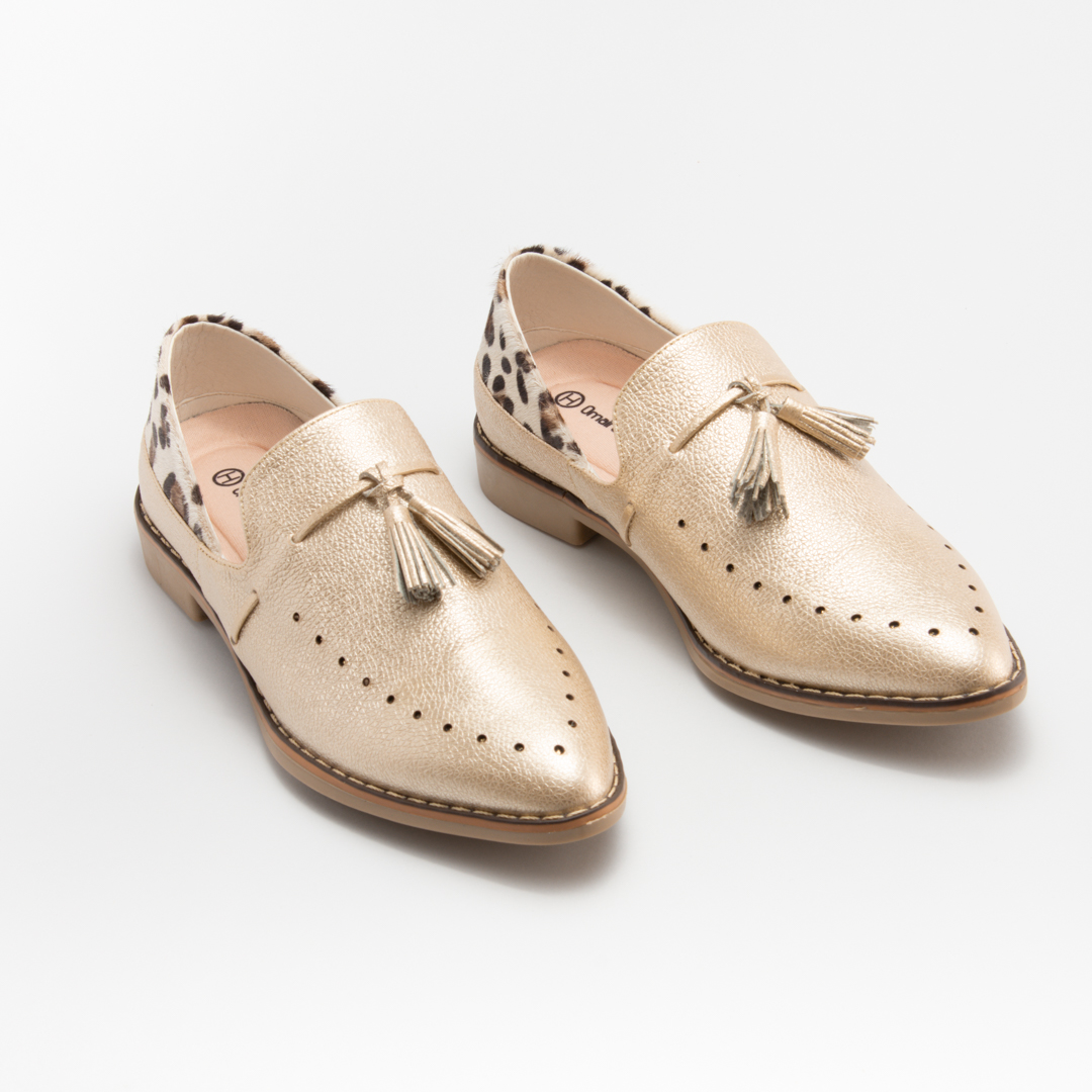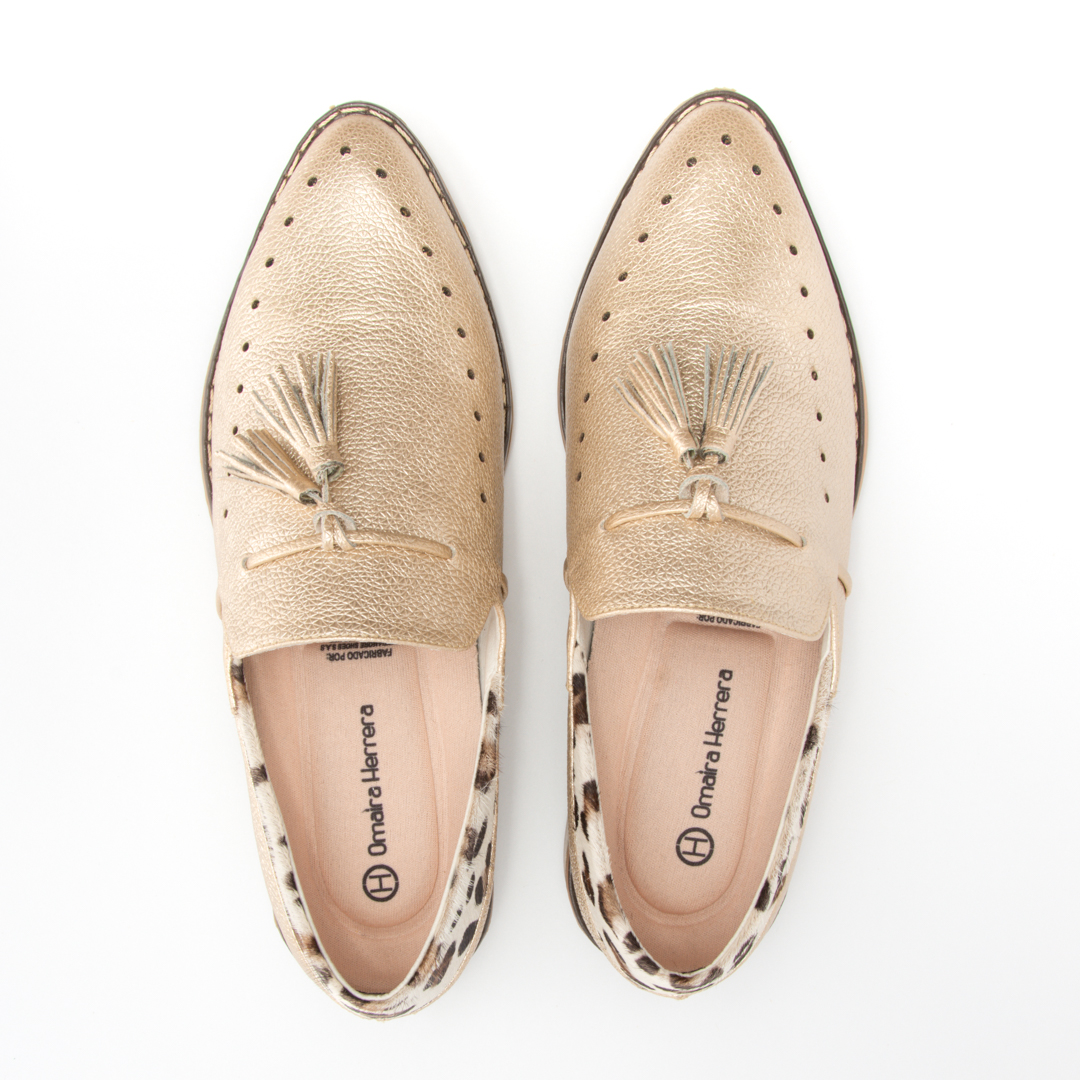Zapato tipo oxford dorado- animal print
